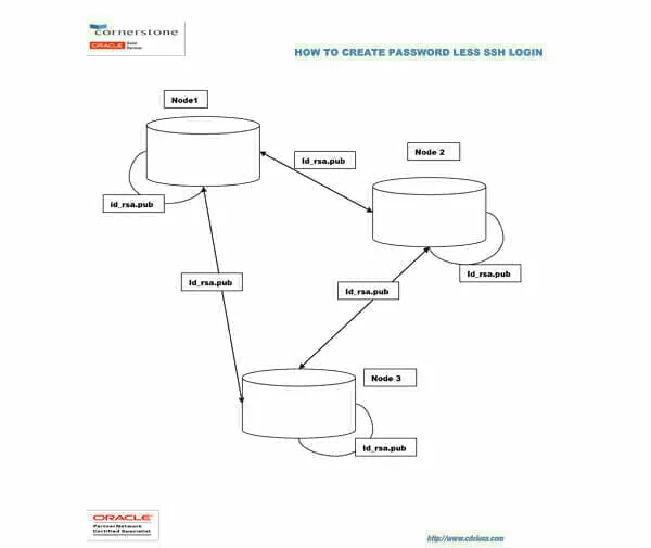 the source node itself. The following figure illustrates the process of enabling ssh public keys across a three node cluster.